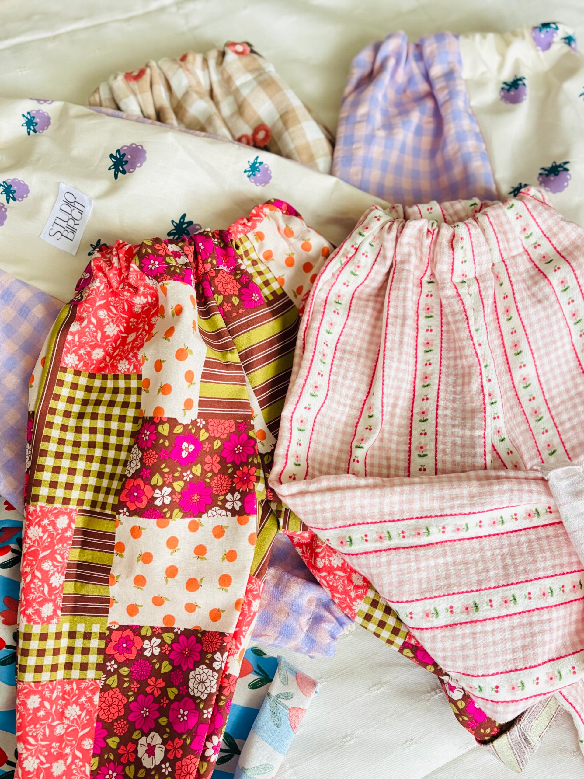 Ik kies mijn stoffen bewust. Soms werk ik met nieuwe materialen, soms geef ik mooie stoffen een tweede leven 🌿 Alles wordt met liefde gemaakt in mijn atelier.